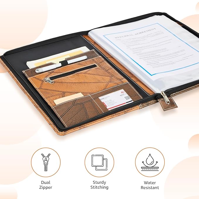- Superior PU Leather Folder: Handmade with dual zip closure, ideal for interviews, presentations, and projects, suitable for professionals, students, lawyers, graduates, and more.