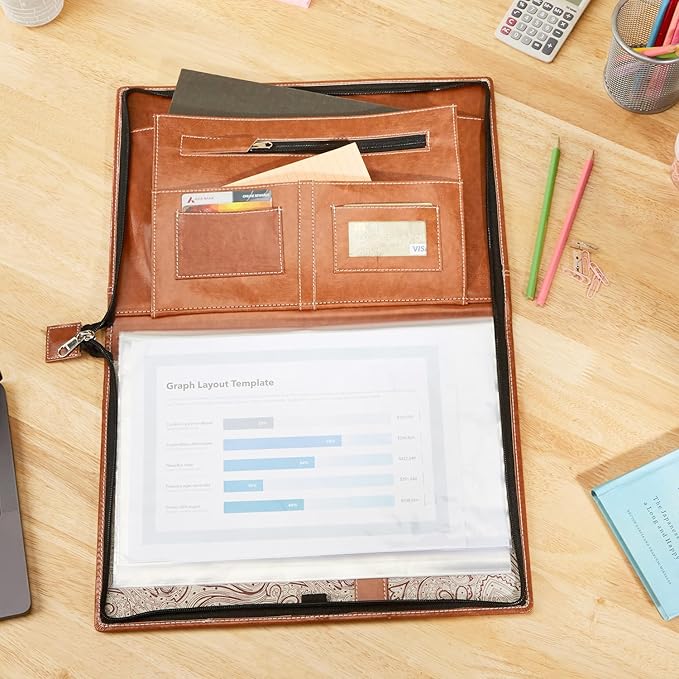 - Durable PU Leather Construction: Handcrafted from full PU leather, this portfolio folder is durable, strong, and resistant to damage from rain, dust, wind, and spills, ensuring long-lasting performance.