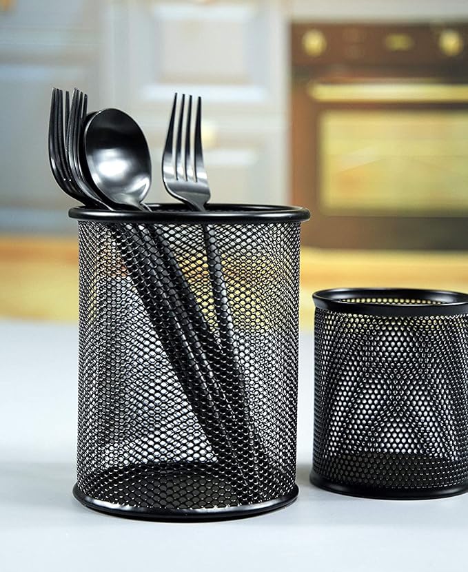 GLUN® Cylendrical Black Mesh Metal Desk Pen, Pencil and Other Stationery Organiser Holder