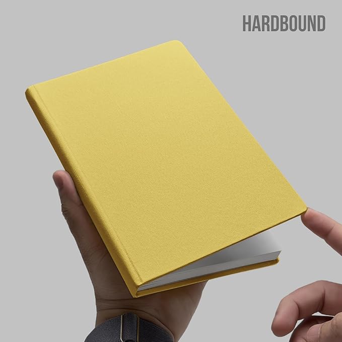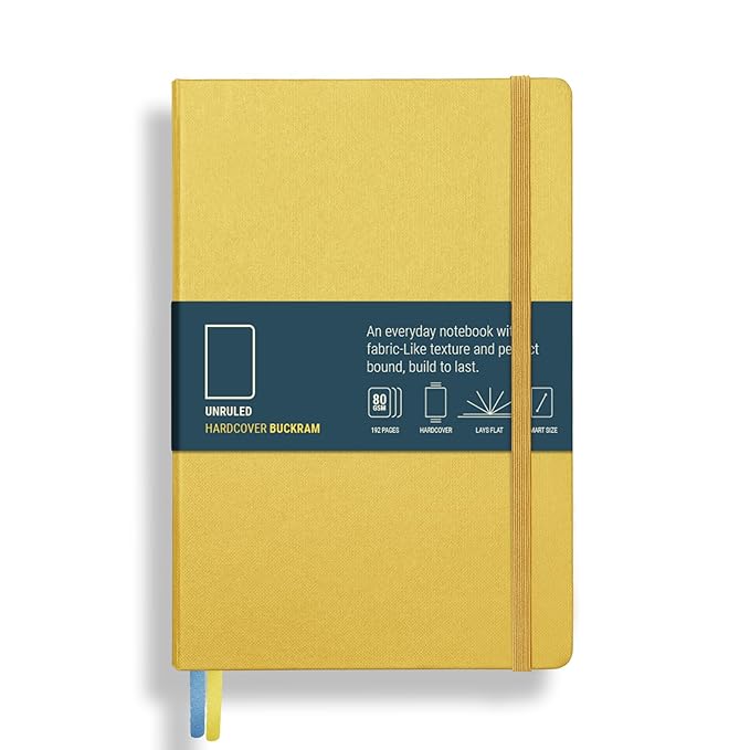 PAPERCOAL Notebook with Buckram Hard Cover – Sunshine – Unruled – Smart Size (200×135 mm) – 192 Pages – 80GSM Natural Shade – Flat Lay